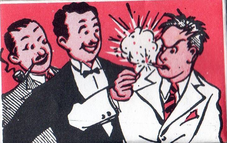 Otra de las bromas más populares es el fulminantes para cigarrillos. Aunque no indica fabricante, por el diseño clásico pienso que también forma parte del catálogo de Sanromà. En todo caso muestra un diseño casi años cincuenta irresistible y contiene diez putaditas para fumadores.