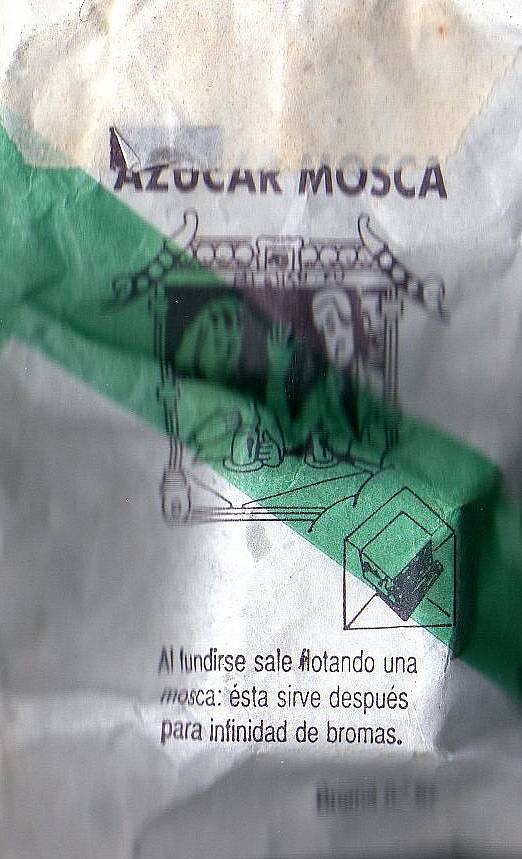 Cuando el azúcar se consumía, dejaba salir de su interior a una mosca motivando la hilaridad de todos. Lo malo es que destrozaba el café, ya que el azúcar me parece que no era muy de fiar. En todo caso, tal y como indica el envoltorio, la mosca (naturalmente de plástico) podía ser reutilizada «para infinidad de bromas» y depositada en cualquier bebida al menor descuido.