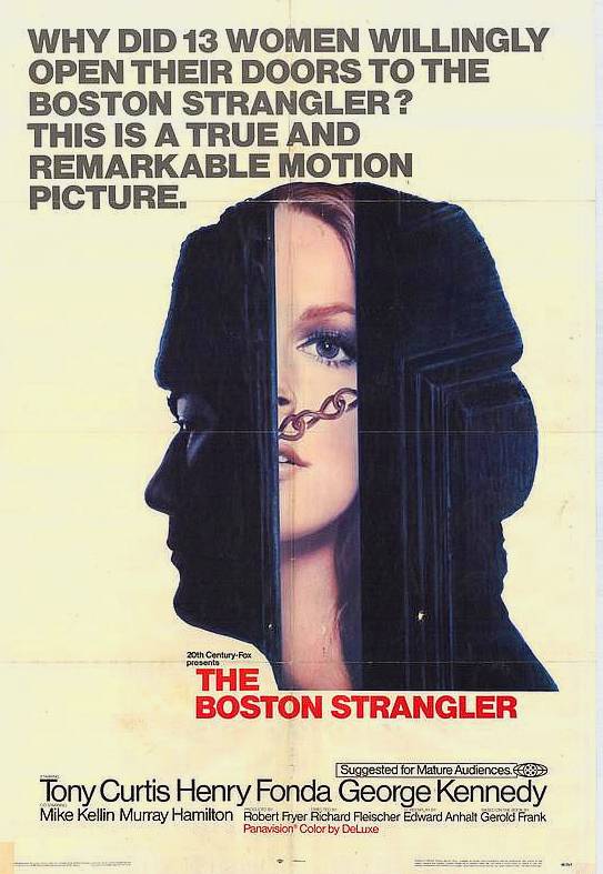Las dos partes de Serendipia recuerdamos haber visto de niños en el cine El estrangulador de Boston (The Boston Strangler, 1968 Richard Fleischer) una película basada en los asesinatos reales de Albert DeSalvo, y en la que no se corta en ser un tipo realmente enfermizo, realizando uno de los primeros retratos descarnados y sucios de un asesino en serie, todo ello sin ahorrar la vertiente sexual de los asesinatos. El niño que yo era no supo entender que la cara que ponía cuando culminaba un asesinado era la de un orgasmo, mientras que la parte femenina de Serendipia recuerda perfectamente que la escena de violación le fascinó, de tal modo que le causó numerosas ensoñaciones (lo que hace que me pregunte: ¿Con que tipo de mujer estoy conviviendo?)