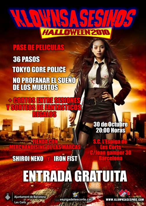 Otro año más, KlownsAsesinos.com, gracias al soporte de El Ayuntamiento de Barcelona distrito de ‘Les Corts’ y el Centro Cultural ‘L’espiga de les Corts’, organiza una nueva y terrorífica velada para celebrar una noche de Halloween especial, con la proyección de tres grandes películas, sorteos y muchos regalos.