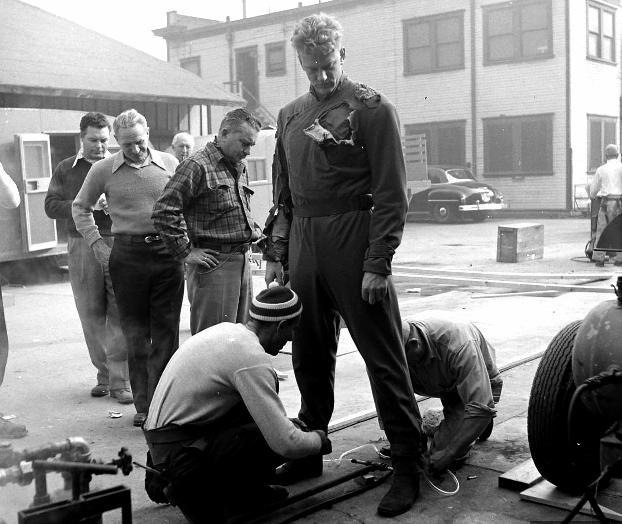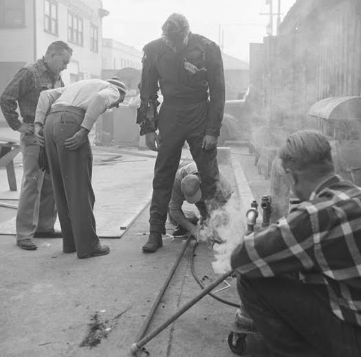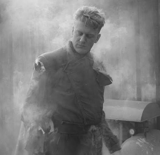 Pero claro, como ustedes saben este blog va de lo que va, y este señor es, ni más ni menos que el gigantón extraterrestre (James medía 1,98 m.) al que combaten los protagonistas de El enigma… de otro mundo (The Thing from Another World, 1951 Christian Nyby y Howard Hawks). Un personaje de apariencia un tanto ridícula, no nos engañemos, pero entrañable. También tiene en su filmografía otro de los títulos señeros de la ciencia ficción de los años ciencuenta: La humanidad en peligro (Them!, 1954 Gordon Douglas) donde se las veía con las hormigas gigantes.