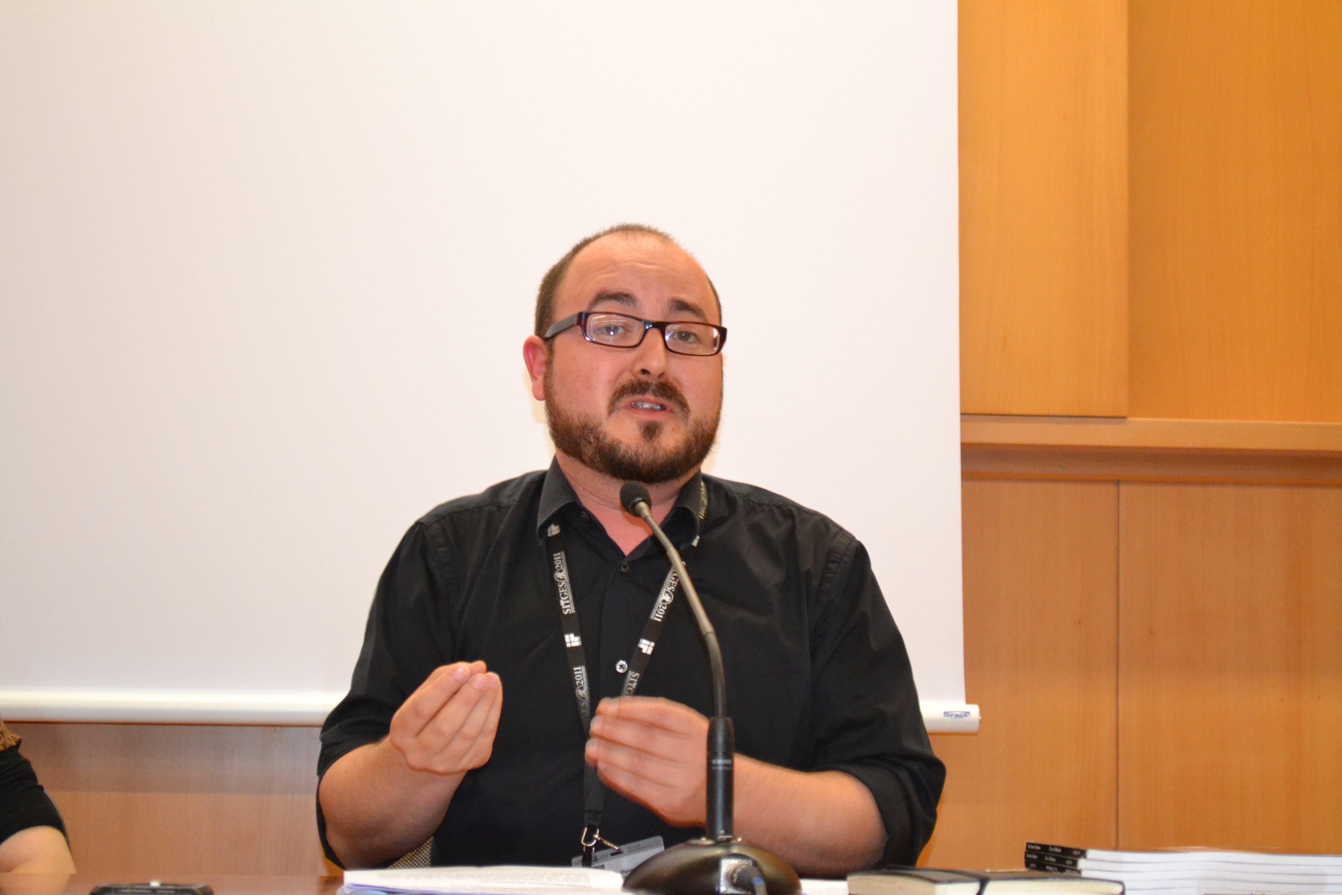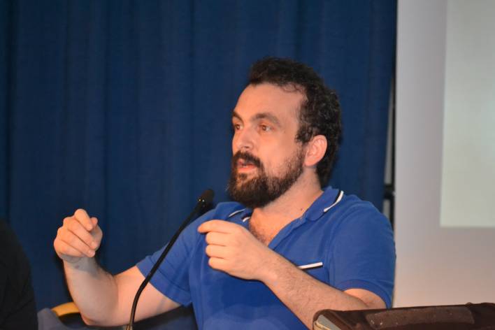 José Miguel Rodríguez (Dioses y Monstruos) explicando los pormenores del proyecto Kifund (Foto Serendipia)