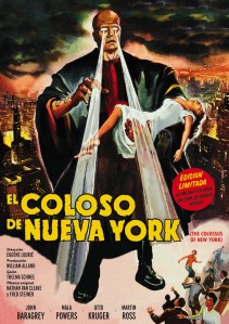 En este cruce entre Tobor the Great y Donovan’s Brain, Nueva York vuelve a ser amenazada por una criatura mortífera, un gigante de hierro controlado por un cerebro diabólico. Producida por William Alland (Tarántula) y dirigida por Eugène Lourié (El monstruo de tiempos remotos), EL COLOSO DE NUEVA YORK es una de esas birrias monumentales que no podemos dejar de ver, sobre todo cuando es Martin Ross (Jim West) quien le da vida al monstruo y persigue a una Mala Powers en camisón vaporoso. ¡Aplastante!