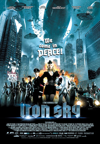 Timo Vuorensola debuta con esta película en la pantalla grande, después de haber conseguido darse a conocer con su fan film StarWreck en 2005 (sobre el que puede leerse una interesante crítica aquí). Iron Sky no resulta totalmente redonda, pero sí tiene buenas dosis de aciertos. Entronca de algún modo con la estética steampunk con su gran despliegue de tecnología retrofuturista, ese laboratorio en la luna con su mad doctor de cómic, esos platillos voladores (ahora ya saben de dónde venían) y, sobre todo, esas naves espaciales con forma de zepelines. Ayuda a darle ese aire añejo la fotografía con color degradado casi hasta el blanco y negro en todo lo que se relaciona con la vida de los nazis en la luna y, por supuesto, la labor vestuario, maquillaje y peinado. En este último apartado destaca el trabajo sobre la francesa Julia Dietze (una belleza aria que quita el hipo) que interpreta a la instructora Renate Richter, la hija del mad doctor, especialista en terraqueología que prepara a los niños para una futura toma de la tierra por parte de los nazis quienes, ella cree ingenuamente, llevan un mensaje de paz y armonía. En cuanto a los actores, destacan igualmente Christopher Kirby, que ha formado parte de distinguidos repartos, entre ellos Star Wars III: La venganza de los Sith (Star Wars: Episode III – Revenge of the Sith, 2005 George Lucas) en el papel del astronauta Washintong, Gödz Otto como el villano Klaus Adler y sobre todo el siempre correcto y casi mítico Udo Kier en el papel de fürer sucesor de Hitler en la luna. Todos ellos nos brindan una interpretación correcta.