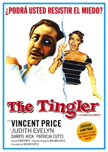 Contenido:THE TINGLER (EE UU, 1959) 82 min. Trailer. Filmografías de WILLIAM CASTLE, VINCENT PRICE, JUDITH EVELYN, DARRYL HICKMAN. Libreto (Historia de la película ilustrada) Extra: THRILLER: THE FINGERS OF FEAR (EE UU, 1961) 50 min. Idiomas: Inglés – Español. Subtítulos: Español – Francés. Widescreen anamórfico (1.66:1) Blanco y Negro