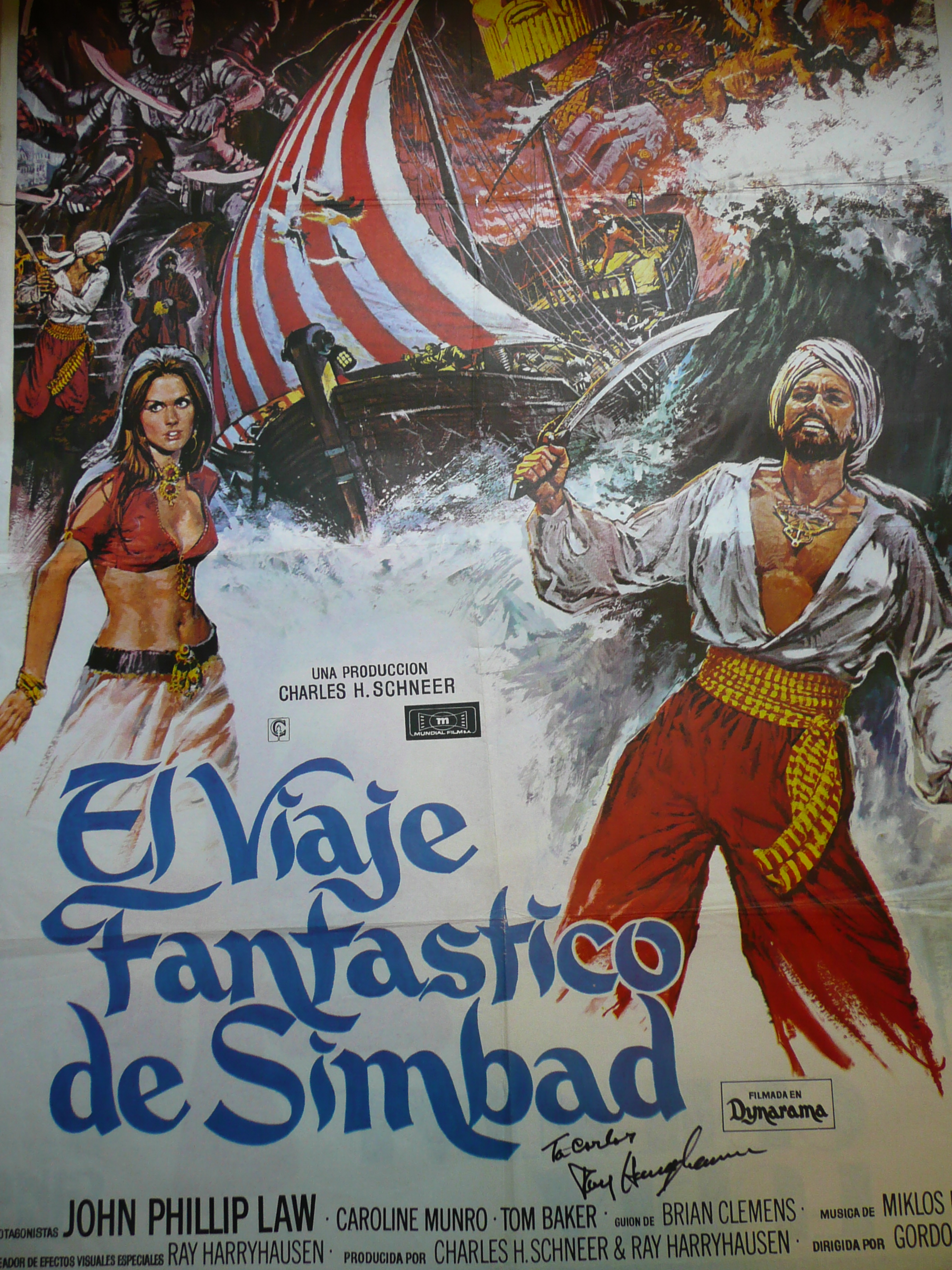 Sabía quien era Ray Harryhausen por Famosos «Monsters» del cine, pero ver el espectáculo en pantalla…era otra cosa. De hecho tanto me gustó la película, que ese día vi más de una vez ya que como ustedes recordarán en los cines de reestreno uno podía quedarse a repetir, que no pude más que pedir al dueño del cine que cuando la retiraran de cartel me diera el póster. Y así fue y ese magnífico poster lo atesoro desde entonces.