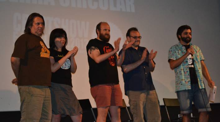 Y después de las películas vino la gala final, con entrevista al homenajeado realizada por el director del festival, Toni Benages, secundado por David González, así como la entrega del galardón. Todo ello amenizado con videos varios y la actuación de Los Xuscos, lo que daría pié a…