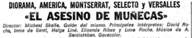 Una propaganda sobre el rodaje del filme en el que puede leerse que se contó con un papel para Paul Naschy que finalmente no se materializó.