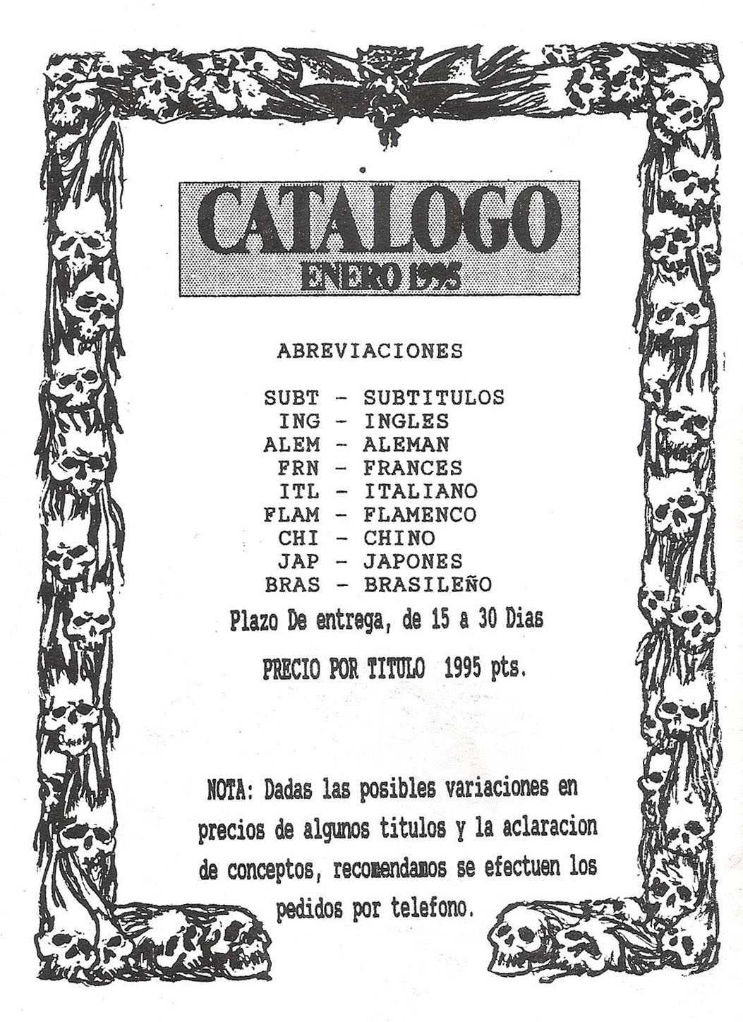 no existía Internet y uno leía y escuchaba hablar de muchas películas que no podía ver. Muchas estaban descatalogadas y otras no se habían editado en España. Para intentar paliar esta escasez comenzaron a abrir con cuentagotas tiendas como Gorgon en Barcelona, en las que se podía comprar las pocas películas editadas en España de género fantástico y muchas de importación, así como libros y publicaciones sobre el género. Lo malo es que las películas de importación, además de tener un alto precio, estaban en inglés. Pero Imagen Death ofrecía muchas de esas películas con audio en castellano y, al ser copias, a precios más económicos. También había en su catálogo películas descatalogadas y, por descontado, originales. Así que fue inevitable el goteo de pedidos que correspondían, irremediablemente, con las pagas extra, en especial la de verano: como nunca coincidía en vacaciones con mi compañera, compraba un lote de películas a Imagen Death y a pasar el verano tan ricamente en casa haciendo el Rodríguez.