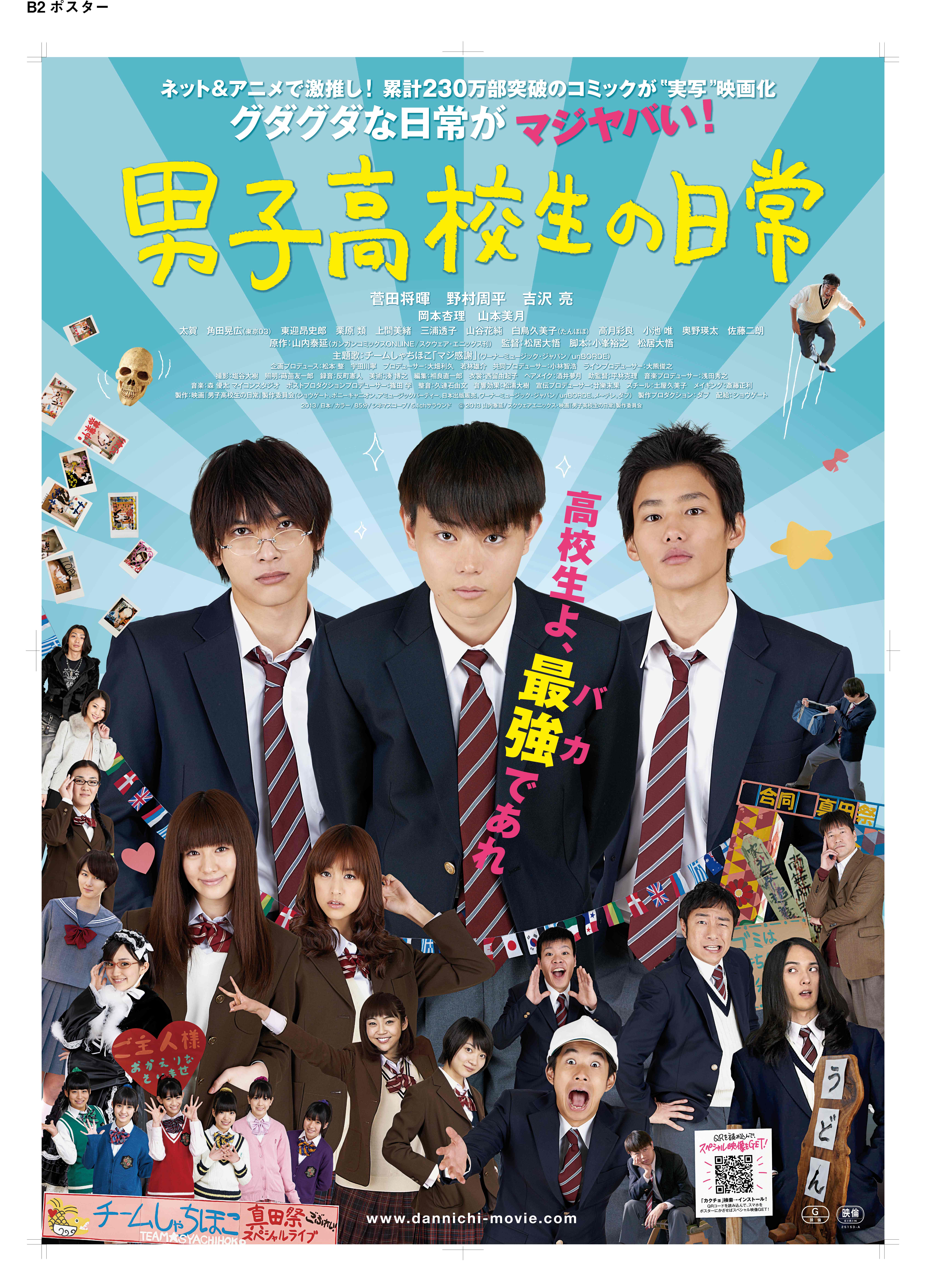 Daily Lives of High School Boys (Daigo Matsui, Japón, 2013) Humor estudiantil a la japonesa y por lo tanto de lo más mutante. Personajes anime, no en vano está basado en un manga, con el consabido fetichismo por los uniformes colegiales femeninos. A pesar de todo muy bien rodada, recurriendo el director a mostrar vacíos para transmitir soledad, aislamiento…