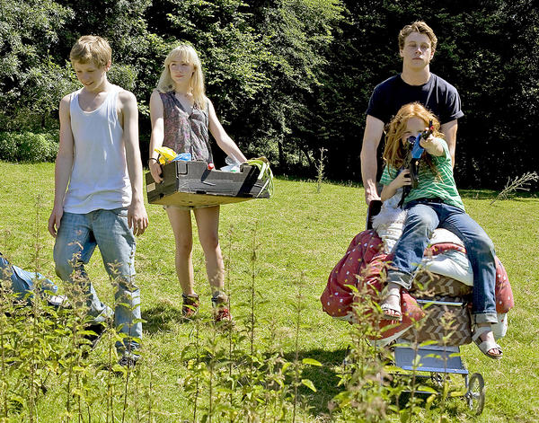 Nada queda claro salvo que está ocurriendo algo de una gravedad inusual, un armagedón del que, igual que los niños que se ocultan, preferimos seguir al margen. Y nos quedamos allí, en la placidez del locus amoenus, donde los jóvenes siguen ocupados en jugar, en conocerse mejor, incluso en enamorarse, es decir, en crecer. Hasta que la fuerza de la realidad se impone, y nos encontramos como sonámbulos en un mundo asolado. Los niños son separados y evacuados. Igual que Fabrizio del Dongo en La cartuja de Parma, Daisy se ve rodeada por unos acontecimientos que se suceden a su alrededor sin que pueda llegar a representarse sus dimensiones. Sólo sabe que si existe un futuro su voluntad es reencontrar a sus primos, en especial a Eddie (George MacKay), el mayor, del que se ha enamorado. El último tercio de la cinta se entretiene en la peripecia de la muchacha por regresar a casa y a un final previsible pero efectivo.