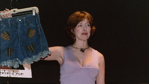 Camille muestra en una convención los shorts que lució durante el film y que todavía conserva (Foto: kitleyskript.com)