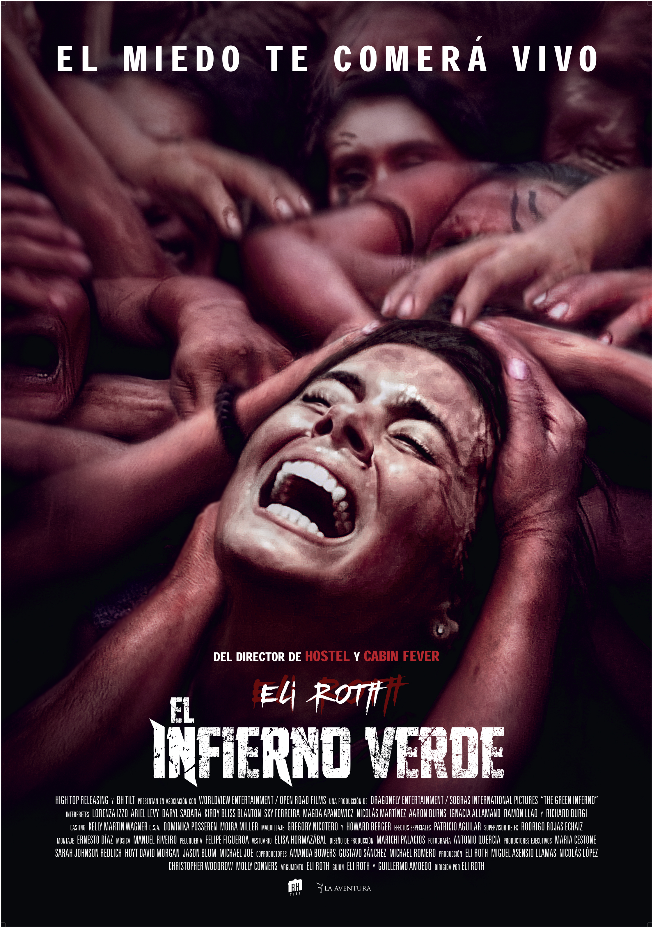 Proyectada en competición en el festival de Sitges de 2013, The Green Inferno, es una revisitación del viejo subgénero transalpino de caníbales, aunque bastante más comedido que los filmes emblemáticos en los que se inspira. Entretenida y a ratos divertida, tiene esas características introducciones tan prolongadas a las que Eli Roth nos tiene acostumbrados y que exasperan a más de uno. Tendrán que tener paciencia, pues hasta el minuto 41 el director no comenzará a poner la carne en el asador.