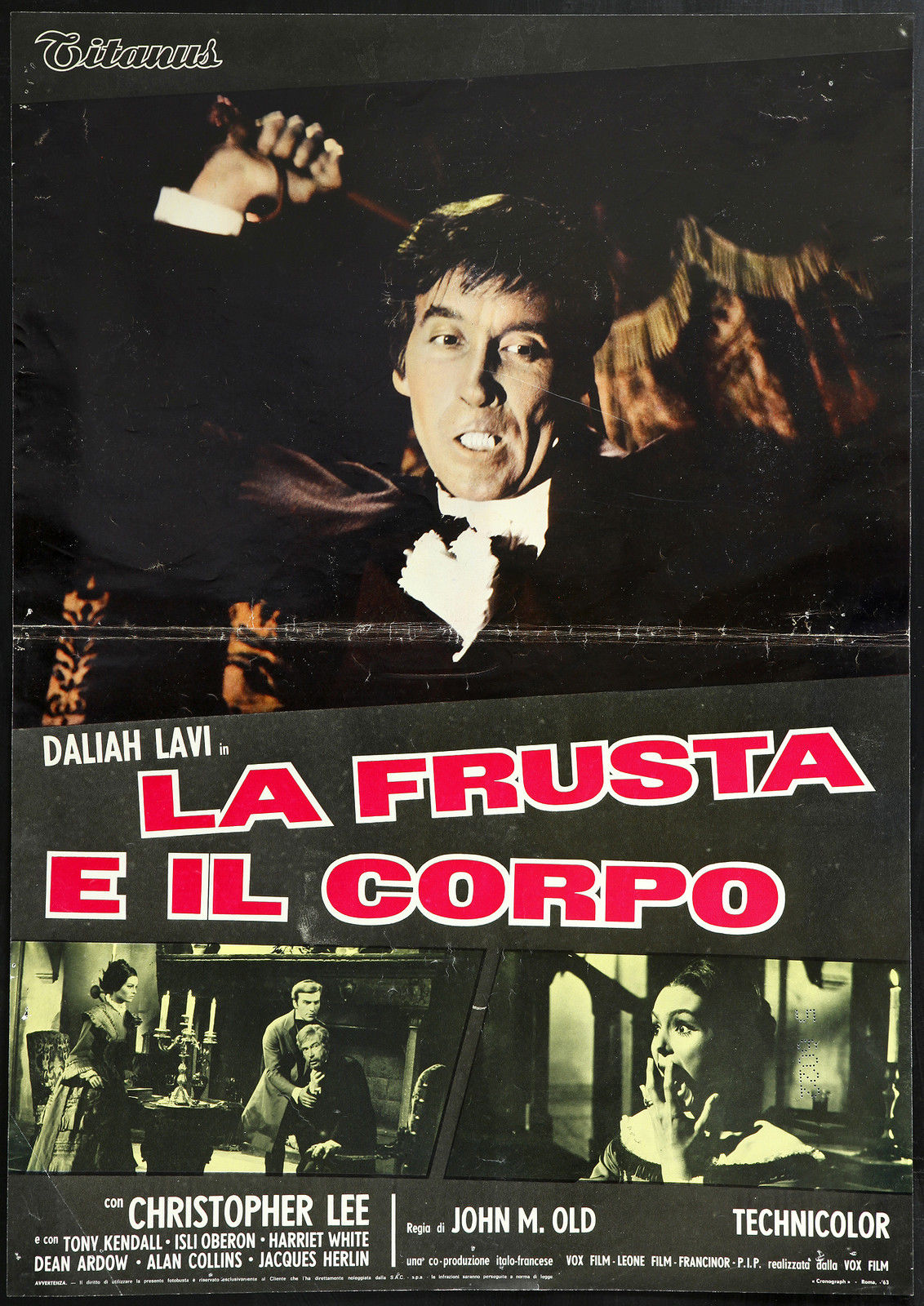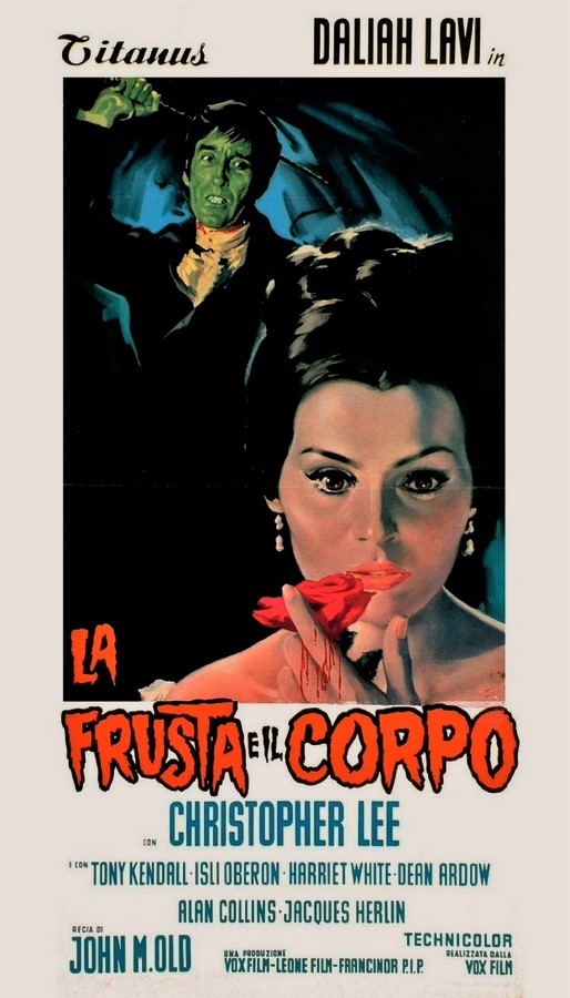 Bava contará con la presencia de dos recién llegados a Italia. Daliah Lavi, una atractiva actriz nacida en Palestina que ya tenía una prolífica carrera en Francia y Alemania cuando llegó a Italia para interpretar a una de las primeras endemoniadas del cine en la muy interesante coproducción italo-francesa El demonio (Il demonio, 1963) de Brunello Rondi, fue incorporada al reparto de La frusta e il corpo aprovechando que ambas cintas estaban producidas por la misma compañía, Vox Films. Y su participación supuso todo un acierto pues Daliah Lavi se revela como la auténtica protagonista de la película, a pesar de que el filme cuenta también con la imponente presencia de Christopher Lee, que tras su revelación como el monstruo por autonomásia de la Hammer, decidió dejarse querer fuera de Inglaterra instalándose en Suiza y acudiendo a trabajar allí donde fuera solicitado, coincidiendo años antes con el propio Bava en el pintoresco péplum Hércules en el centro de la tierra (Ercole al centro della Terra, 1961). Esta etapa italiana, previa al retorno del actor a Inglaterra, donde de nuevo bajo Hammer interpretó (al parecer guardándose el orgullo), todas las secuelas posible del conde Drácula, el actor la recuerda con bastante simpatía en su autobiografía (3), donde narra el vertiginoso ritmo de producción en el que se vio envuelto. Tras La frusta e il corpo marchó a Roma, sin tiempo para descansar, para interpretar a un oficial de la SS en El justiciero rojo (La Vergine de Norimberga, 1963) para Antonio Margueriti; a continuación y en el sur del país pasó a encarnar al conde Karnstein en La maldición de los Karnstein (La cripta e l’incubo, 1963) para Camillo Mastrocinque, que es una indisimulada versión del clásico vampírico Carmille de Le Fanu; y finalmente, y de nuevo volviendo al centro de Italia, interpretó al conde Drago (¿?) para Luciono Ricci en Il castello dei morti vivi (1964).