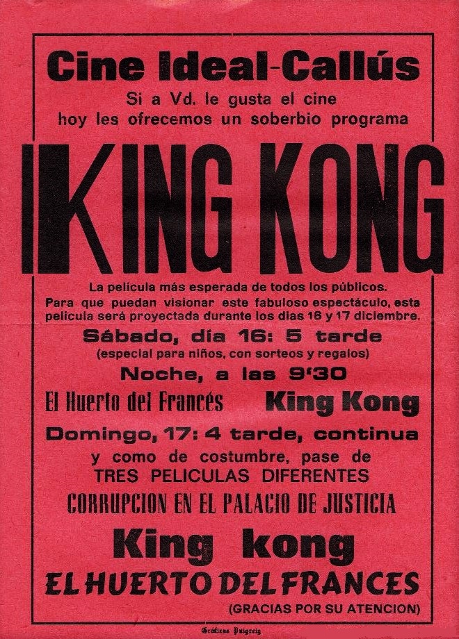 [6] “King-Kong. Una fantasía cinematográfica de la R.K.O” por J. Ruiz de Larios en La Vanguardia del martes 21 de noviembre de 1933. Pág. 15.