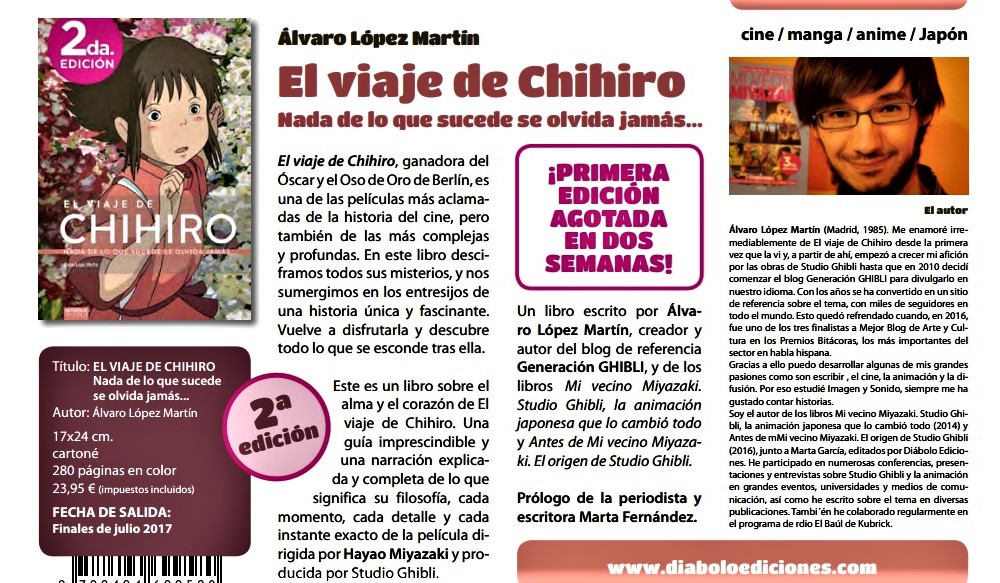 El extraordinario y merecido éxito de ‘El viaje de Chihiro. Nada de lo que sucede se olvida jamás…’ de Álvaro López Martín ha sido tal que en dos semanas se ha agotado, obligando a la editorial a lanzar este mes una segunda edición. Pero Diábolo sigue apostando por el Anime y el Manga en sus dos novedades enmarcadas en su colección de Cultura Popular. Por un lado un enciclopédico volumen dedicado a Sailor Moon en todas sus manifestaciones, ‘En nombre de Luna, te castigaré. El universo mágico de Sailor Moon’; y para los más nostálgicos un repaso a los dibujos animados de BRB Internacional: ‘Gnomos, Naranjitos y Mosqueperros’.