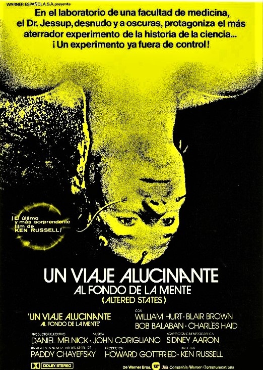 Teniendo esta edición como leit motiv los estados alterados no podía faltar una película de Ken Russell. Y valdrían varias: desde Tommy (1975) a Lisztomania (1975) pasando por Gothic (1986) o La guarida del gusano blanco (The Lair of the White Worm, 1988), pero se antoja mucho más acertada Viaje alucinante al fondo de la mente (1980), que además tiene en su título original, Alterated States, la excusa idónea para proyectarse. Y también en copia pristina. La película quizás ha envejecido un poco mal: tras un buen punto de partida termina desembocando en una desigual segunda parte que delira entre lo más sicodélico de 2001: una odisea del espacio (2001: A Space Odyssey, Stanley Kubrick, 1968) y la pura serie-B de The Neanderthal Man (E. A. Dupont, 1953). Russell, amante de los románticos y de su atracción por el abismo, nos invita a un viaje que recorre el linde entre la genialidad y la locura, entre la ciencia y la creencia, entre ceñirse al método científico o experimentar en carne propia hasta más allá de lo sensato, todo en aras de aprehender lo absoluto. Es el viaje de su protagonista que perseguirá la demostración de su hipótesis, que los estados de conciencia alterados se traducen en fenómenos físicos, prestando su propia carne, ante el descrédito de algunos, los ortodoxos que no arriesgan ni vuelan solos, pero que tienen que acatar la certificación objetiva de la contrastación, porque así funciona la ciencia (no en vano la autoridad consultada en un momento del filme es el Doctor Wissenschaft, apellido alemán que se traduce como ciencia, al ciencia con mayúsculas, además). Irregular, interesante, más excesiva que profunda, Russell en estado puro, un estado alterado de conciencia que repele y atrae a partes iguales.