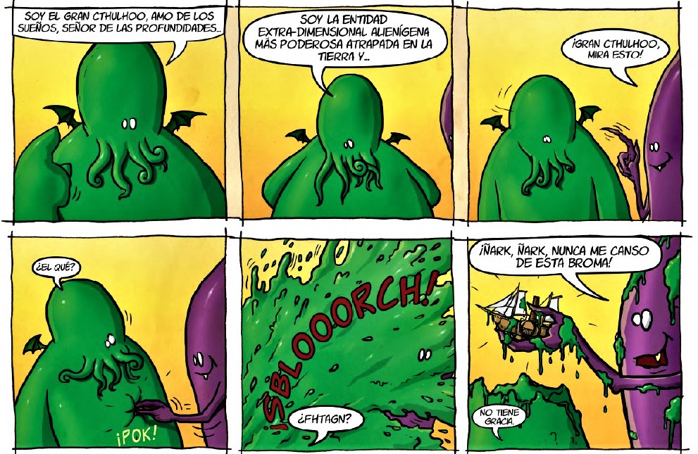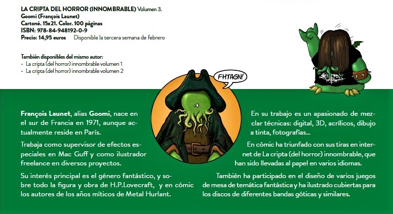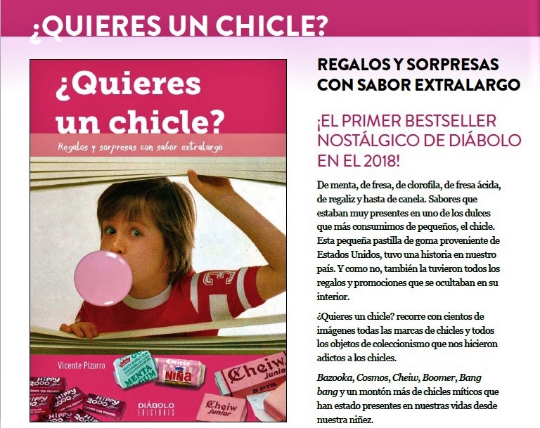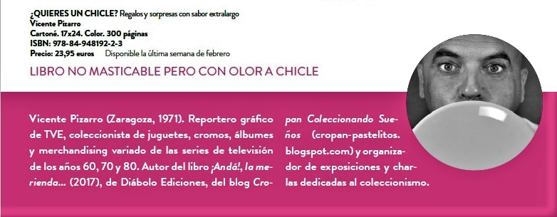 Diabolo Ediciones nos introduce de nuevo en la República Pop recuperando de los vericuetos de la memoria los olvidados cromos y objetos que coleccionamos mientras masticábamos chicle con ¿Quieres un chicle? un libro de Vicente Pizarro que les recordará lo viejo que se están haciendo. De manera idéntica a como lo hizo el autor con ¡Andá!, la merienda… pero con los cromos de pastelitos industriales. También notarán los estragos del tiempo cuando lean lo que escribe, pero ya desde el mundo de la televisión, Telemuñecos, el nuevo libro de Miguel Herrero, autor que ya nos llevó, con Diábolo, a viajar por la televisión de los 80, de los 90 y a entrar en uno de los espacios más recordados: el Un, dos, tres, responda otra vez. ¿No tienen suficiente? Pues si no fueron tan listos como para hacerse con el fantástico libro-guía El viaje de Chihiro. Nada de lo que sucede se olvida jamás, ahora tienen una tercera oportunidad de hacerlo. Créannos, nunca es tarde para profundizar en el maravilloso mundo de la mejor película de Miyazaki. Y para terminar: ¡Arrepiéntanse! pues los Primordiales comandados por el mismísimo Cthulhu vienen a por ustedes… pero en un tono ¿distendido? ¿gamberro?… entren en La Cripta del Horror (Innombrable) y averíguenlo. Quizás no puedan volver para contarlo…