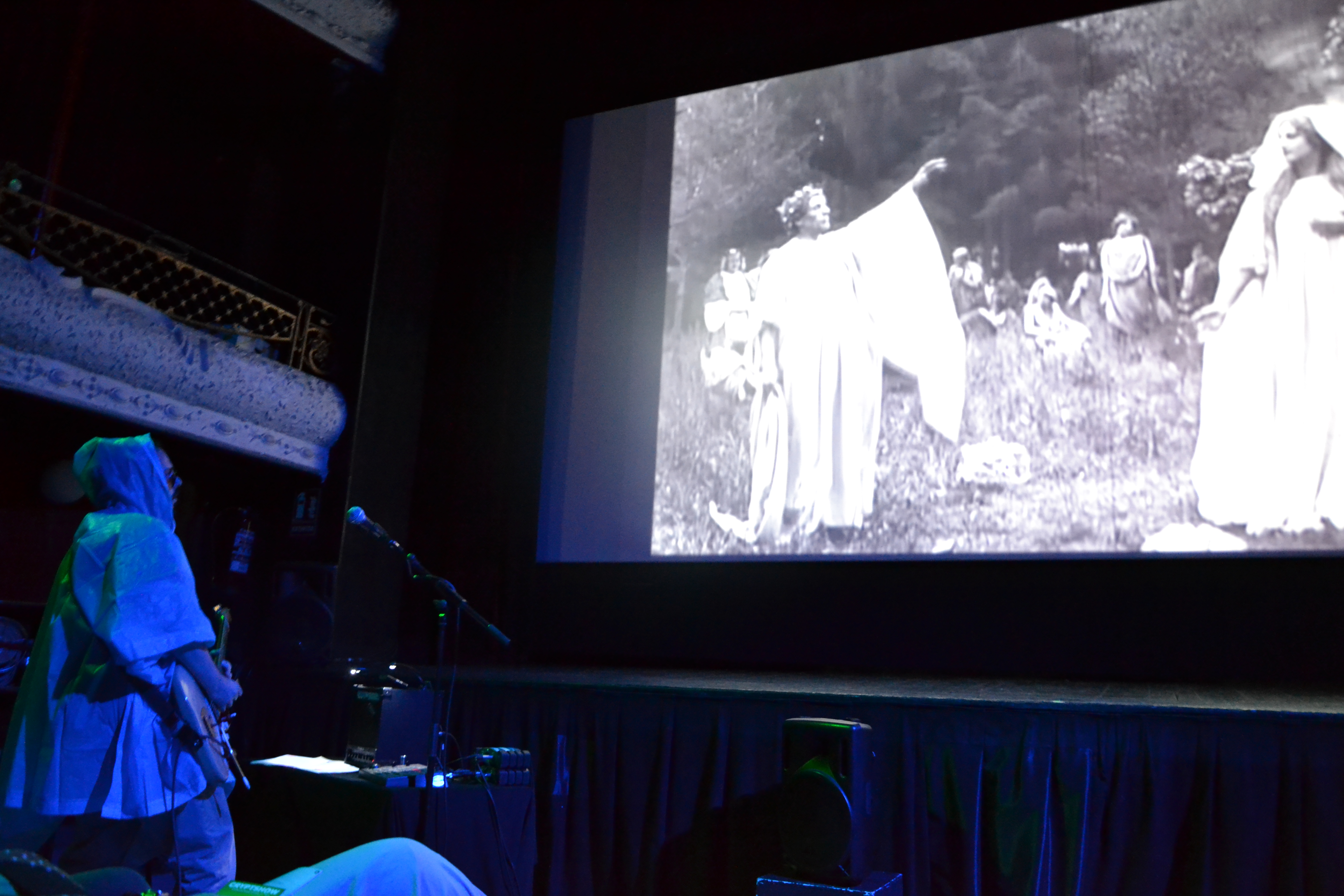 Aunque Agustí Busom se presento en esta ocasión con un grupo más reducido, también presentó una partitura más trabajada. Tocó la guitarra y cantó, acompañándose de un magnífico violinista e improvisando y añadiendo ambos solos a una música pre-grabada con la que dotar de vida a un experiencia muy especial: la visita al infierno de Dante y Virgilio y del espectador a un pasado, ya lejano, en el que el cine todavía estaba naciendo. Una delicia y una de las actividades favoritas de Serendipia.