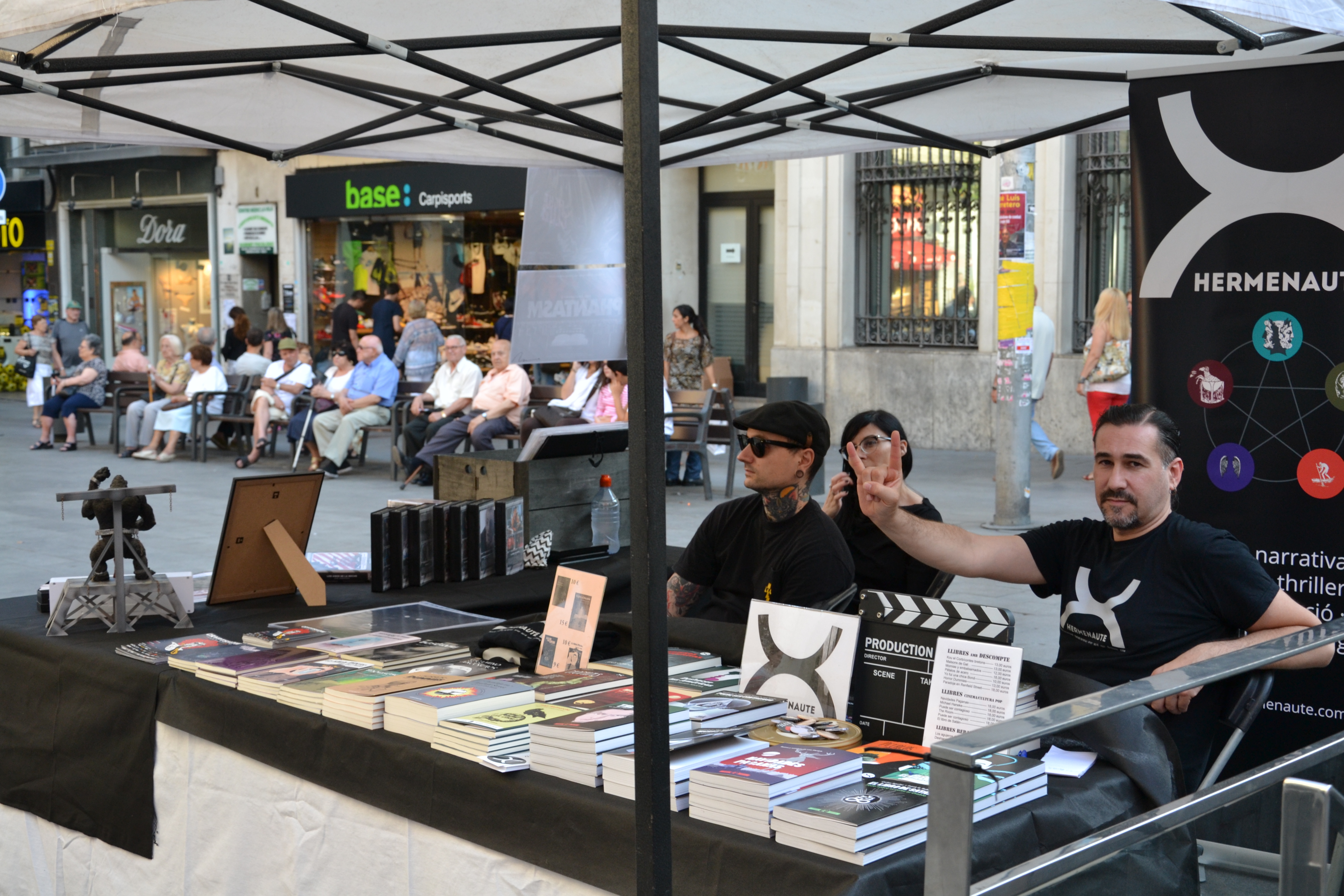 Finalmente y en relación con la faceta literaria del Cryptshow cabe añadir que, al igual que anteriores años, durante los días de festival hubo un puesto en la Plaça de l’Ajuntament donde estuvieron a la venta las novedades de Hermenaute, Edicions Secc y los magníficos posters y diseños de Mikiedge. ¿Que quién es Mikiedge? pues el responsable de la cartelería original de la sala Phenomena, entre otras cosas.