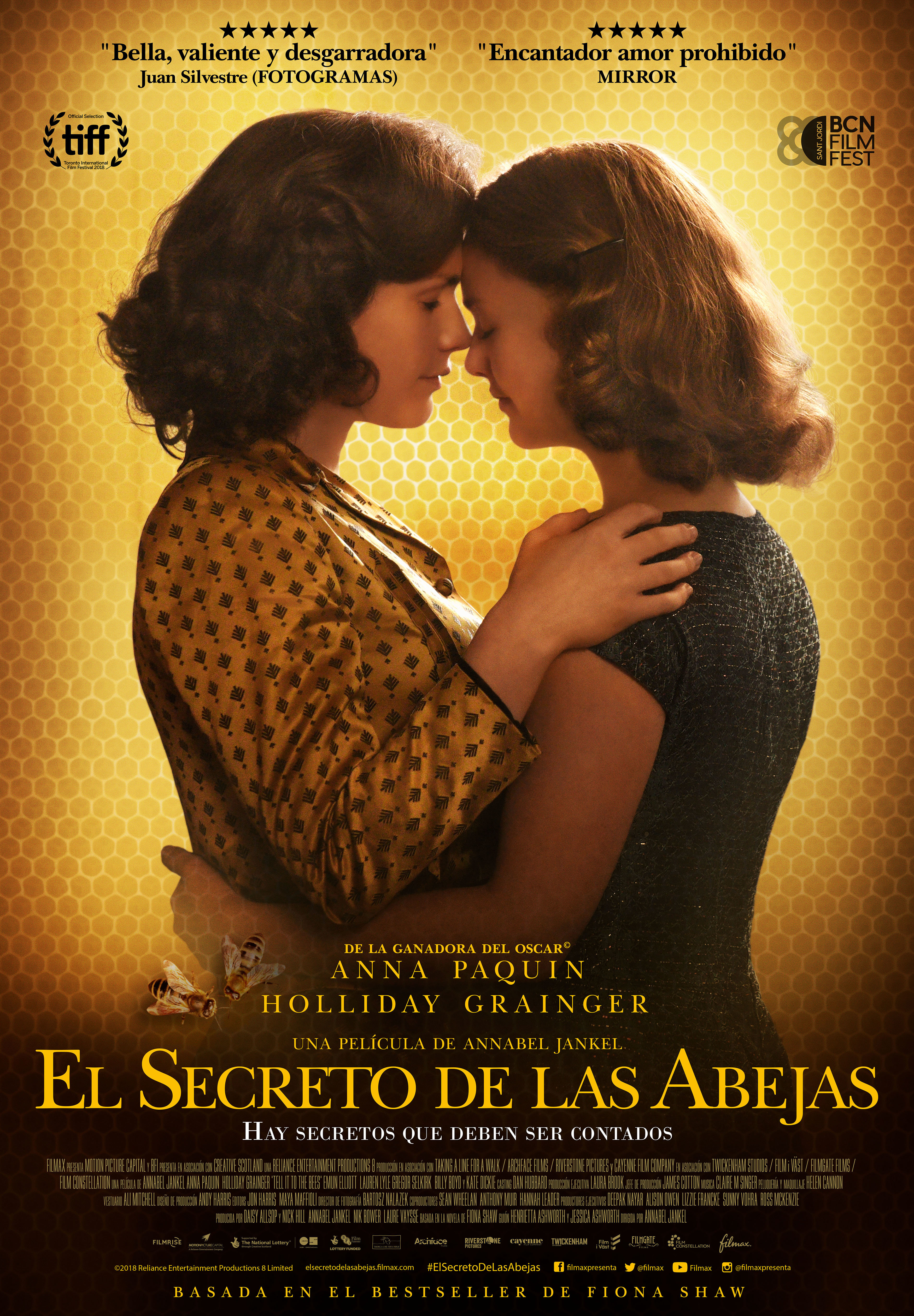 El secreto de las abejas aborda con inusitada delicadeza una historia de amor entre dos mujeres que se desarrolla en una pequeña ciudad escocesa a inicios de los cincuenta. Jankel retrata el asfixiante ambiente industrial, con su gris arquitectura, así como la sensación de culpabilidad que sufren ambas mujeres, que contrasta con la hipocresía imperante entre los habitantes de esa pequeña población, que con sus habladurías y rumores acusan a las mujeres de estar haciendo algo ‘antinatural’. Tan bien rodada como predecible, la película se beneficia de la participación de sus dos magníficas protagonistas, Anna Paquin y Hollyday Grainger.