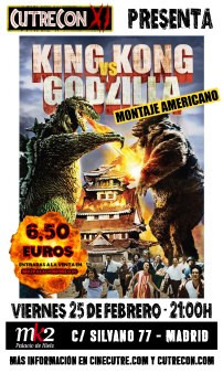 La sesión estrella del viernes es nada menos que un clásico de los años 60, King Kong contra Godzilla, el montaje americano, a las 21:00 horas. La película (cuyo remake se estrenó el año pasado en cines) da exactamente lo que promete su título: los dos monstruos gigantes más famosos del cine repartiéndose bofetones entre sí en escenarios de cartón piedra y utilizando las maquetas y los coches de juguete como armas arrojadizas. Una coproducción de Japón y Estados Unidos que tuvo un montaje para cada país,