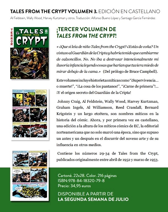 ¿Les gusta pasar miedo? Pues nuevamente Diábolo se pone manos a la obra y lo hace con el terror como seña de identidad: se incrementa la reedición de los cómics EC con el tercer volumen de Tales from the Crypt; podremos saber Todo sobre los fantasmas gracias a una mítica publicación inglesa que Diábolo pone a nuestra disposición en una cuidada reedición; y, finalmente, los escalofríos no dejarán de aumentar con la lectura de El vigilante del umbral y otras historias escocesas de terror, de John Buchan. Repetimos: ¿Les gusta pasar miedo? pues son afortunados, junio es el mes del terror en Diábolo Ediciones.
