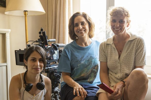 Celia Rico junto a sus dos protagonistas, Adriana Ozores y María Vázquez, durante el rodaje del film.