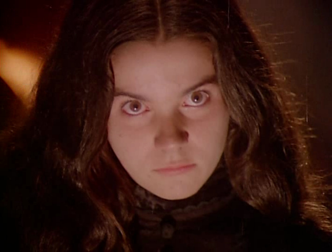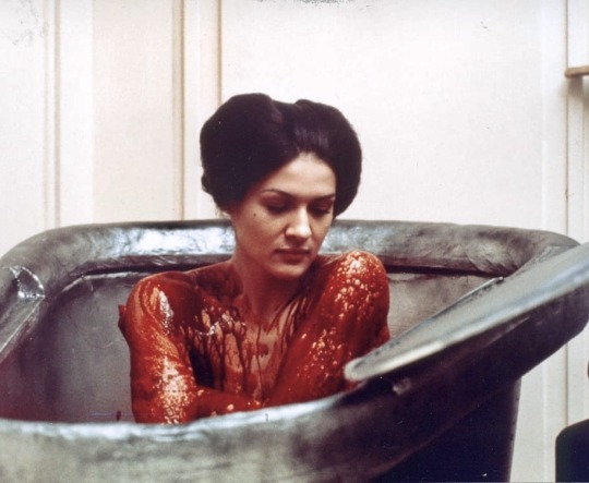 Entrar en el universo de Moctezuma es sumergirse en un mundo fascinante, decadente, repleto de luces y sombras que resaltan los tétricos decorados casi orgánicos en los que habitan las jóvenes internas y la orden religiosa, que viste unas irreales túnicas a base de gasas que casi las asemeja a momias y que también nos evocan la pintura Muerte de Marat de David. Y es que Alucarda tiene una puesta en escena pictórica, las secuencia se suceden como auténticos tableaux vivants, y los siniestros decorados casi evocan las Carceri d’Invenzione de Piranesi. Es este tratamiento de la fotografía, la escenografía y el vestuario, el que la eleva por encima de otras producciones de su momento, y ello a pesar de que es fiel a las estrategias narrativas de los 70s (zooms, filtros, cámara lenta). Igualmente setentero es el desarrollo de lo erótico con ese efecto flow, pero, aunque sus escenas de fino erotismo estén rodadas con un filtro a lo Hamilton, resultan mucho más carnales que las del fotógrafo y cineasta inglés. Son unas escenas poderosamente sexuales, en especial el fascinante beso sangriento entre las dos jóvenes protagonistas. Gran parte de su sensualidad es responsabilidad de Tina Romero en la piel de Alucarda, con sus largos cabellos, su mirada penetrante, y sus ropajes negros, la joven encarna perfectamente la condición de bella y réproba tentadora que exige su personaje. De