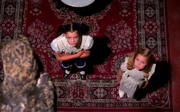 sea por un escorzo, ya sea porque ocupan un lugar no relevante y, sobre todo, porque nunca vemos sus rostros; son meras presencias fantasmales excluidas del universo de significación de la acción. Maticemos, sí vemos rostros adultos en el filme, pero siempre desde el punto de vista de Flavia, por virtud del montaje, vemos por sus ojos y vemos con la distorsión, el sesgo, que las patrañas que Verónica le insufla introducen sobre su percepción. Este acertado trabajo de la imagen deja para la posteridad bellos cuadros que retendremos en la memoria, por citar solo uno, nos quedamos con el plano de Flavia en el entierro de su profesora de piano (cuya muerte la niña atribuye a un conjuro de Verónica): llueve, los adultos visten de negro riguroso y Flavia de blanco, en un leve picado se nos muestra a la niña en el centro de la imagen como único personaje al que vemos el rostro, enmarcada por la aureola que los paraguas de los adultos construyen sobre ella. El terror que ella siente casi se nos antoja una presencia física.