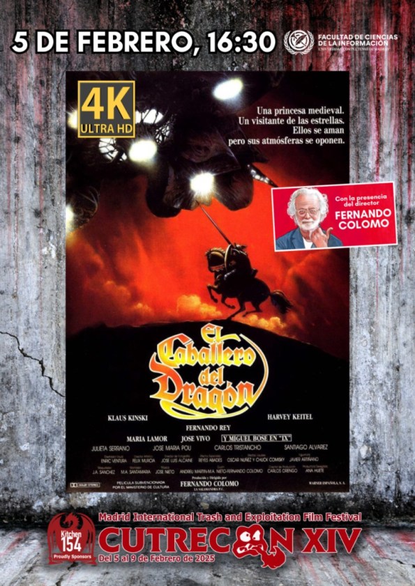 La película de ciencia ficción y fantasía medieval “El Caballero del Dragón” (1985), una de las producciones más ambiciosas y a la vez fallidas de la historia del cine español, se proyectará el próximo 5 de febrero a las 16:30 horas en la Facultad de Ciencias de la Información (Av. Complutense, 3) de la Universidad Complutense de Madrid. La sesión, que contará con la presencia de su director, Fernando Colomo, forma parte de la programación de la decimocuarta edición de CUTRECON, el Festival Internacional de Cine Trash de Madrid, patrocinado por Kitchen 154. Además, la entrada será libre hasta completar aforo y el largometraje podrá verse en una nueva restauración en 4K realizada por Mercury Films.