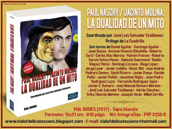 El próximo día 5 de Octubre de 2017 Vial of Delicatessens lanza al mercado el libro colectivo Paul Naschy / Jacinto Molina: La dualidad de un mito, el cual será presentado oficialmente el próximo 12 de Octubre a las 13 horas dentro del espacio Brigadoon en el marco del Festival Internacional de Cine Fantástico de Sitges, en un acto que contará con la presencia de su coordinador José Luis Salvador Estébenez, así como de varios de los autores participantes.