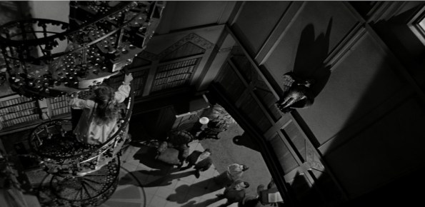 La línea cómica no se pierde y seguirá ofreciéndonos títulos en épocas más tardías, ahí está el recientemente estrenado en España Los Huespedes (The Innkeepers, 2011) de Ti West, pero queremos centrarnos ya en aquellos filmes en los que la dimensión sobrenatural y terrorífica se muestra en toda su plenitud. Para ello (y por razones de espacio) daremos un salto histórico y nos dirigiremos a la década de los setenta que nos dejará tres de los títulos más relevantes. No sin antes detenernos en The Haunting (1963) de Robert Wise, sin duda una de las obras más emblemáticas en este tema junto a la anterior a ella House of Hauntet Hill (1959) de William Castle o la posterior Al final de la escalera (The Changeling, 1980) de Peter Medak. Con su blanco y negro preciosista, The Haunting nos enfrenta a la casa maldita que lo es en sí y por ella misma, es decir, la cadena de sucesos trágicos relacionados con ella son anteriores a haber sido habitada. La casa es una entidad omnipresente en todos los planos, excelentemente diseñados por Wise para dar una imagen distorsionada y desquiciante. Esa casa sin ángulos rectos, de abigarrada decoración rococó y multiplicada por sus numerosos espejos, es una auténtica fuerza viva y absorbente. A destacar especialmente el plano en el que la fuerza sobrenatural se manifiesta tras una puerta (no hay ni una sola aparición en el filme) dando la sensación de que la casa respira. Todo un clásico.