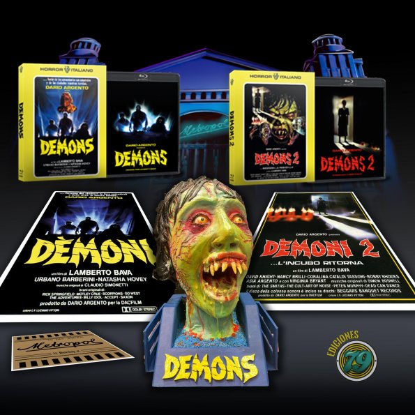 Y llegó el día. Tenemos el honor de presentaros nuestras ediciones de «Demons» y «Demons 2» de Lamberto Bava que inauguran nuestra colección de Horror Italiano. Gore, terror y heavy metal que han forjado a sangre, fuego y garras a toda una legión de fans de estos clásicos atemporales editados por primera vez en España con sus dos versiones, remasterizados en 4K y con horas de extras exclusivos. Ambas películas tendrán edición limitada en Blu-ray (con funda, póster y certificado de edición limitada numerada), edición sencilla en Blu-ray y pack doble en DVD. Las dos versiones de las películas y todo el contenido extra solo estarán disponibles en las ediciones en Blu-ray.