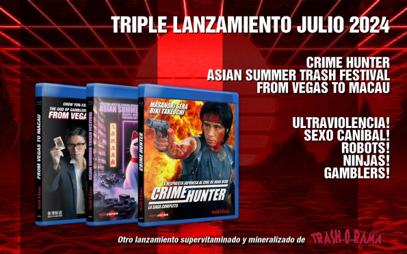 Siguiendo con Japón, tenemos la trilogía Crime Hunter, que inauguró el V-Cinema de Toei, heroic bloodshed a la japonesa con Riki Takeuchi, que ya se está convirtiendo en un habitual de nuestros lanzamientos. Como de costumbre, las secuelas jamás se tradujeron a ningún idioma de este planeta, y se han subtitulado especialmente para esta edición.