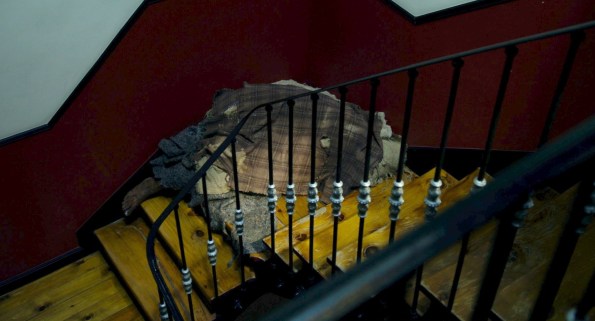 Mery y Óscar, una pareja, encuentran una mañana a un vagabundo en el rellano de su céntrico piso de Madrid. No saben muy bien qué hacer. Se debaten entre ayudarle directamente o llamar a una ambulancia para que se lo lleven de ahí. Mientras este dilema tan burgués sobrevuela sobre sus cabezas, el vagabundo, revelado ya como una criatura informe y voraz, conseguirá entrar en su hogar y amenazar no solo la integridad de la pareja, sino el bienestar que con tanto recelo suele atesorar la clase media.