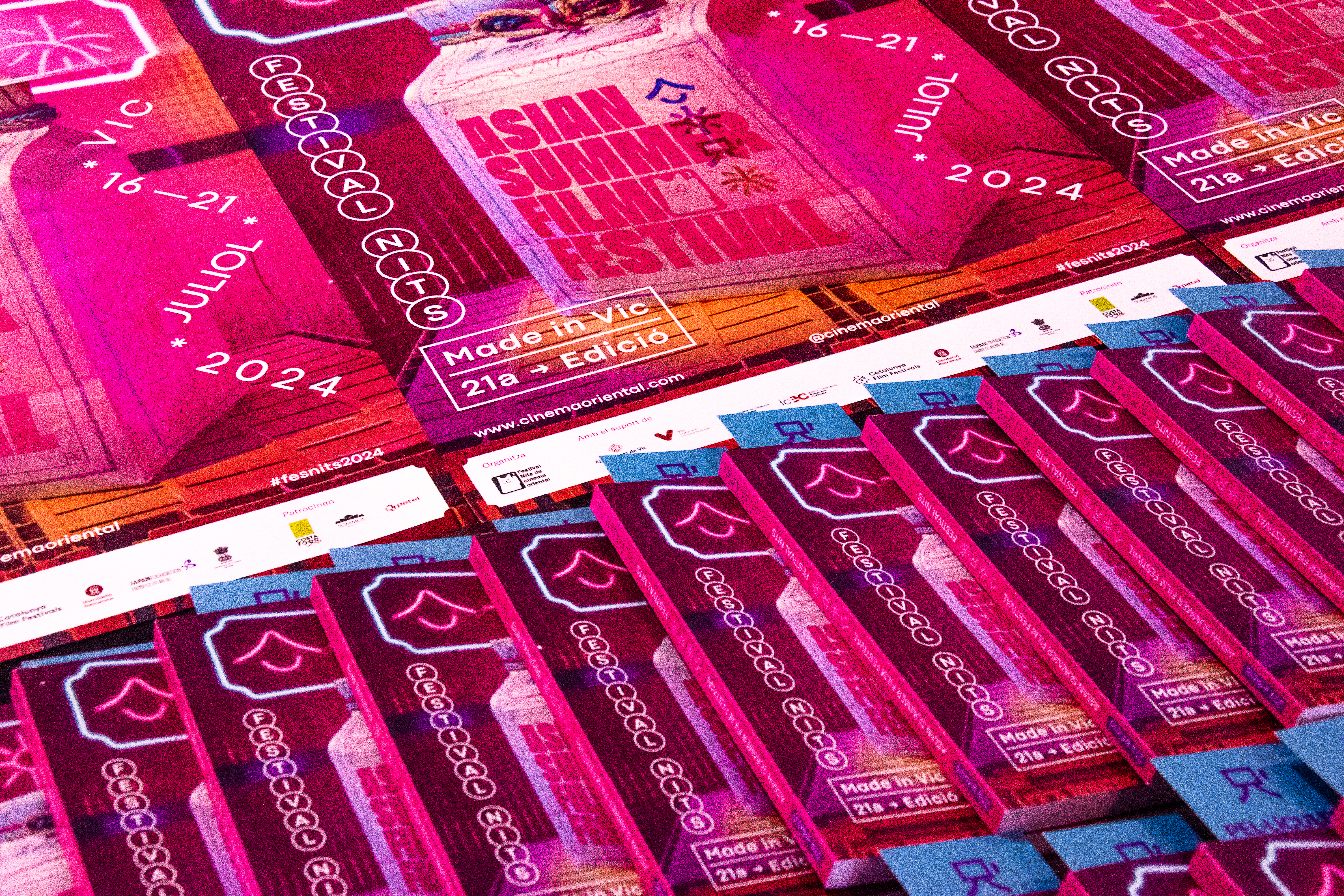 Cambio de imagen. La otra principal novedad que se ha anunciado es la nueva imagen, que se aleja de la de los últimos años y propone una composición vibrante, con una estética pop y rompedora, nocturna pero llena de luz; noches iluminadas con un elemento tan característico como los neones que pueblan las calles de Hong Kong, Tokio y otras ciudades del sudeste asiático y que son un escenario recurrente en muchas películas. La parte tipográfica y de diseño se ha creado a partir de la investigación de recursos gráficos habituales en el diseño tradicional y contemporáneo asiático, y también se ha creado un “alfabeto” propio con kanjis y pictogramas que simbolizan las características y espíritu del festival. Cómo en ediciones anteriores, el estudio Partee ha creado la imagen de manera artesanal, en volumen, y posteriormente ha añadido elementos digitales.