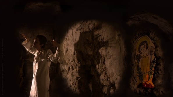 Vuelta a Tramontana para ver la esperada por Serendipia Astrid’s Saints, tercer largometraje (o segundo, según como se mire) del director de culto Mariano Baino tras Dark Waters (1993). Un film cuyo rodaje se ha prolongado durante 14 años y que es un cuento de hadas con santos y oraciones en vez de duendes y brujas, un tanto abstracto, en el que está esmerada la puesta en escena. Cada uno de los planos que dan cuenta de la acción y su escenario tiene pleno sentido narrativo (o poético), el duelo de Astrid se escenifica en un universo hierático formado por un sistema de cuevas, auténticas catacumbas, iluminadas con velas y en las que la iconografía cristiana tiene todo el protagonismo, la partitura y los efectos de sonido, partes también de la narración, hacen el resto. Astrid (una gran Coralina Cataldi-Tassoni), una madre afligida por la muerte de su hijo, deberá desentrañar los misterios que la unen a otras madres en duelo, a sus hijos, y también a los jóvenes santos a quienes todas ellas adoran. Desgarradora exploración de la psique de una mujer atravesada por la pérdida que, a través del realismo mágico, encuentra su equilibrio entre lo sobrenatural y el sufrimiento terrenal. Una conmovedora historia sobre la fe y el poder de la oración.
