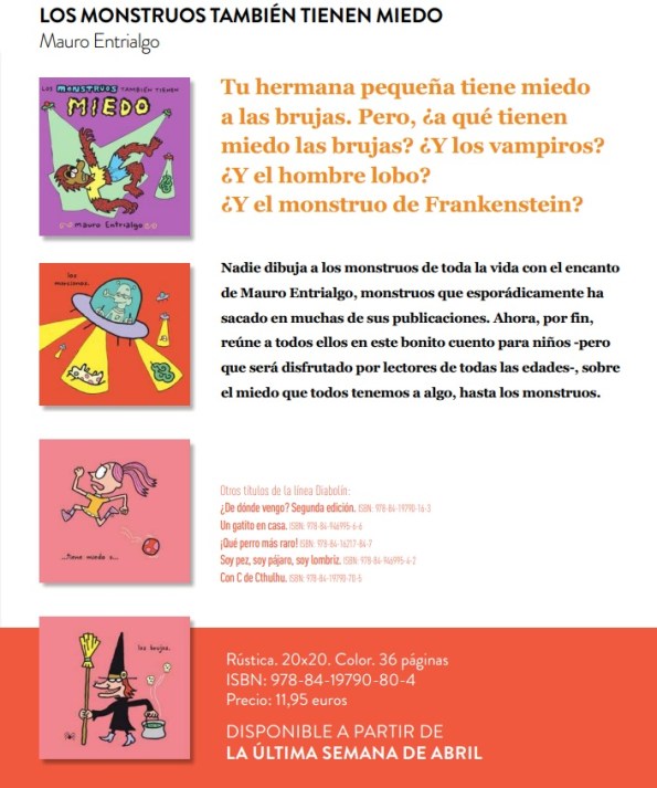 Diábolo prepara un abril completo con un poco de todo: cómic con Lo mejor de Simon y Kirby; anime y manga con la reedición ampliada de Kame Hame Ha!; cine fantástico y de terror con En el espacio nadie puede oír tus gritos un libro sobre la saga Alien y Galaxia Lucas; novela de terror con Wakefield y El Triunfo de la muerte, pero también lo mejor de la novela de aventuras con Rafael de Sabatini y César Borgia, una antología de relatos; finalmente, el gran Mauro Entrialgo acercando los monstruos clásicos a los más pequeños con Los monstruos también tienen miedo, en edición en castellano, catalán y euskera. Un lanzamiento como podemos ver muy, muy completo.