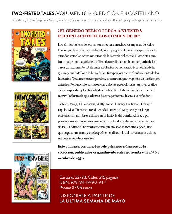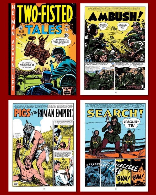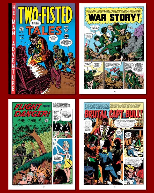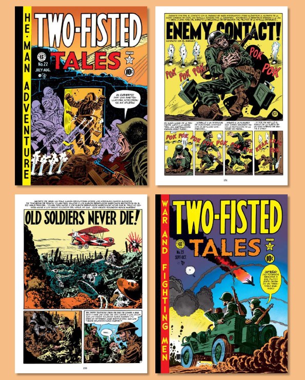 Aunque el cómic se inicia con pasos un tanto caóticos, pronto Harvey Kurtzman tomará, tal y como veremos, el poder total de la publicación y además de todas las portadas y la tercera historieta, se encargará de escribir todos los guiones, que ganarán mucho y tendrán un tono que representará la principal diferencia con respecto a otras revistas competidoras. En las páginas de este primer tomo, que reúne los seis primeros números de Two-Fisted Tales, disfrutaremos del arte de Jack Davis, Wally Wood, John Severin y Bill Elder, Alex Toth, Al Feldstein y Johnny Craig, además del propio Kurtzman, un grupo de ilustradores que bien pronto se limitará a Davis, Kurtzman, Wood y Severin y Elder un equipo, sin lugar a duda, insuperable. Descubramos, pues, el cómic bélico vía EC Comics con Two-Fisted Tales.