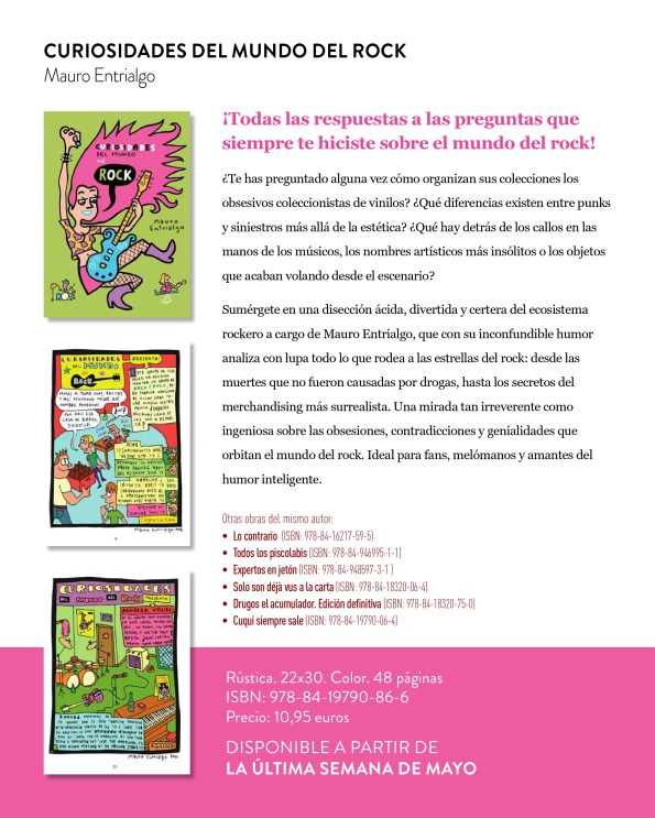 Pues ríase usted de todos ellos y de sí mismo con estas Curiosidades del mundo del Rock, que también les permitirá aprender cosas que posiblemente desconocían. Todo ello en un formato de lo más cuco y manejable editado por Diábolo Ediciones y que se suma a la ya larga lista de libros editados dedicados a Mauro Entrialgo.