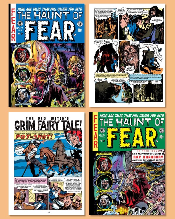 El tomo también incluye dos adaptaciones de relatos de Ray Bradbury escritas por Al Feldstein y divertidos cuentos de hadas macabros (The Old Witch’s Grim Fairy Tales) que dibuja, como siempre, de manera impecable, Jack Kamen y que contienen mucho humor negro en sus viñetas.