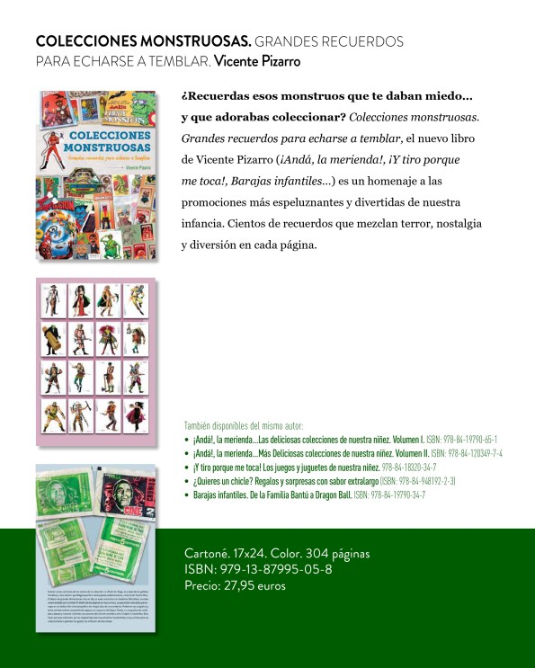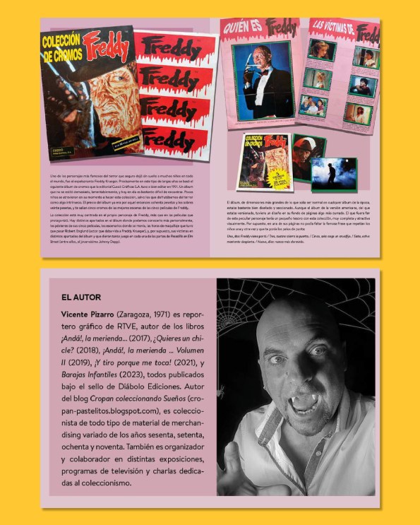 Pizarro, además, completa su volumen con otros objetos relacionados con los monstruos con apartados dedicados a los juguetes, barajas, juegos de mesa, baratijas de kiosco, helados… y en general todos los objetos relacionados con monstruos desde los setenta a los noventa y más allá. En total un completísimo volumen con interesantes textos explicativos y, como es norma en Diábolo, cientos de imágenes reproducidas a todo color. Un libro, en general, del todo recomendable para los que ya peinamos (si hay pelo) canas y los que comienzan a sacar panza por la edad, pues sus objetos y colecciones cubren tres décadas.
