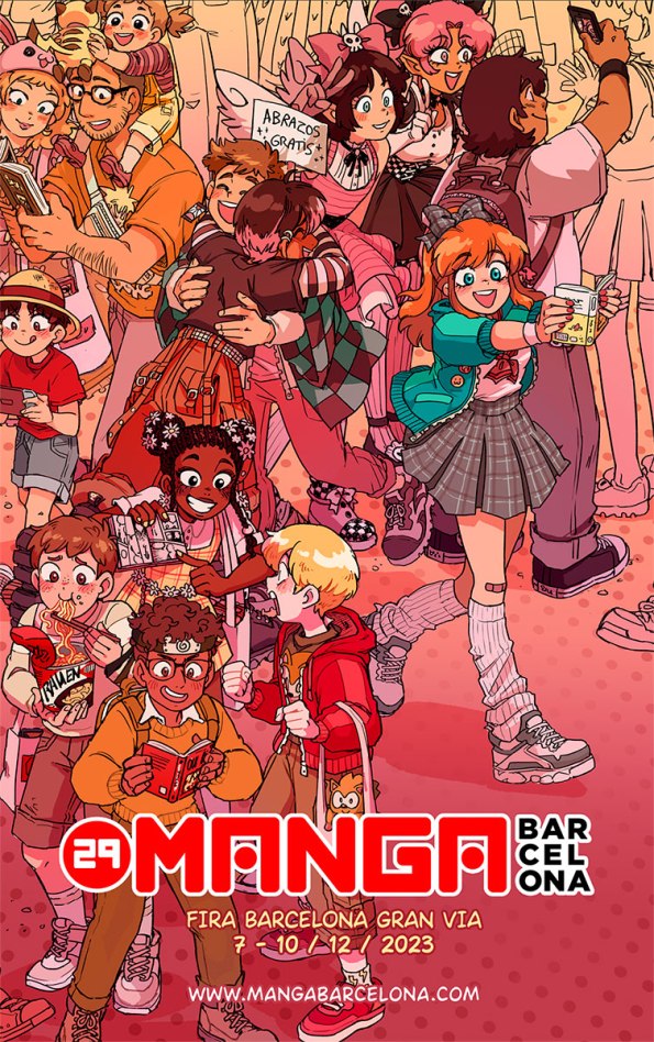 Para ilustrar el cartel de esta nueva edición del Manga Barcelona se ha contado con una de las autoras más populares del momento: Míriam Bonastre. La autora de Pineda de Mar, y formada en la Escuela Joso, publicó con gran éxito a la plataforma Webtoon el cómico juvenil Hooky (una obra con claras influencias del manga y el anime). Su versión en papel ha explotado en todo el mundo, apareciendo en las listas de los más vendidos de The New York Times y convirtiéndose en la autora de cómics más vendida a Europa el 2022. Bonastre ha querido reflejar en su cartel el multitudinario y positivo ambiente que se vive en el Manga Barcelona, así como el retorno de aquel contacto más estrecho que habíamos echado de menos en pasadas ediciones. También se pueden encontrar algunos de los elementos clave del acontecimiento, como el manga, los videojuegos, el cosplay, la comida japonesa y también este punto de unión entre diferentes generaciones que representa el Manga Barcelona.
