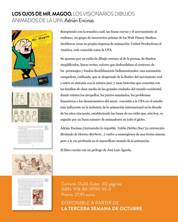 Mucha cultura popular, dibujos animados y cómic en esta nueva tanda de novedades de Diábolo Ediciones. Cómic con la ¡tercera edición! del primer tomo de Tales from the Crypt; Dibujos animados con Los ojos de Mr. Magoo. Los visionarios dibujos animados de la UPA, un libro realizado por el especialista Adrián Encinas; y finalmente mucha cultura popular con juguetes (la reedición del primer tomo de Informe Madelman), Cromos (la segunda edición de ¡Andá!, la merienda… y espectáculo popular con Gracias por venir. La revista musical en el cine y la televisión. Ahí es nada. Y que los fanáticos del cómic no se alarmen, pronto habrá buenas noticias para ellos.