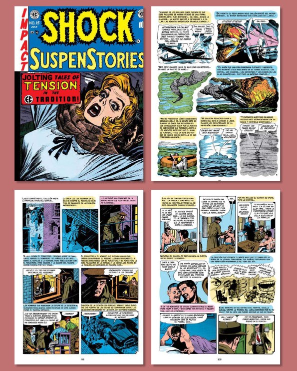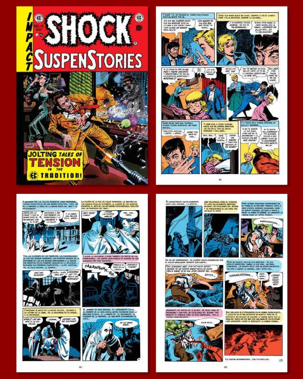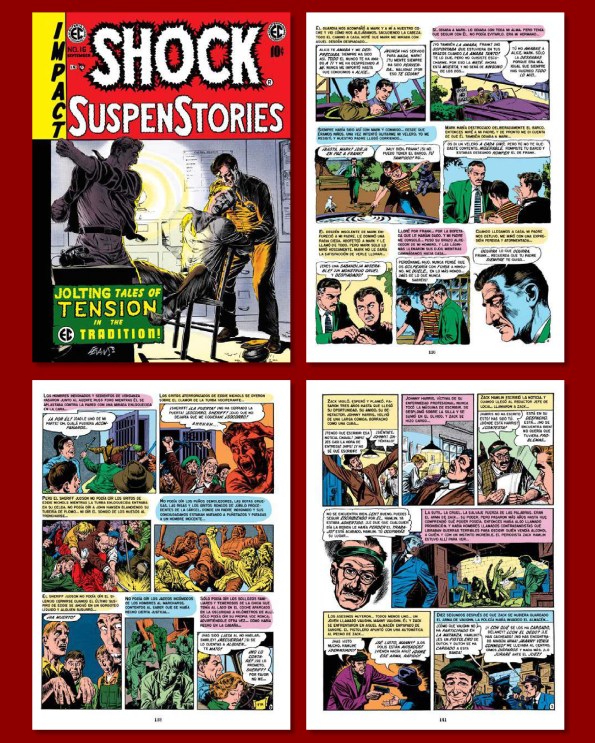 en el mar en un bote a la deriva. El confidente (The Confidant) tiene como protagonistas a los habitantes de un pequeño pueblo que se tomarán la justicia por su mano. ¡A voz en grito! (For Cryin’ Out Loud!) está ilustrada por Reed Crandall y es la historia a la que se hace referencia en portada. Protagonizada por un asesino cuya conciencia no le deja en paz y se siente observado y acusado por todo aquel con el que se cruza. Cierra el cuaderno La única vía (Well Trained) un cómic realizado por George Evans con un protagonista obsesionado con que un asesino muera electrificado en la silla eléctrica… o donde sea, pero bajo el efecto de los voltios. En Shock Talk la polémica y el grueso del correo está centrado en la historieta Hermanos de sangre, que como hemos visto se publicó en el número 13. Como suele suceder, la mayoría de cartas felicitan a la editorial por editar este tipo de historias con fondo abiertamente anti racista, pero siempre hay quien disiente de ello. Se hace referencia a una carta que escribió un militar en aquel mismo número quejándose del contenido de otra historieta anti racista: «Me pareció muy buena hasta que leí una historia sobre el amigo negro de un soldado. Esta historia apesta tal y como la escribieron, y me gustaría que la persona que la escribió tuviera que dormir, comer y convivir con negros o negratas. Estoy de servicio y no me gustaría que un negrata comiera en la misma mesa que yo...», una carta que levantó en general las iras del resto de lectores, pero que se encontró también con apoyos, como estas que reproducimos aquí: «Hermanos de sangre es estrictamente para los negratas. ¿Qué vais a hacer, dedicar vuestra revista a los negros?» o «Estoy llorando a lágrima viva por ese pobre negrata después de leer la última tontería pro-negros de Wood (y Feldstein)«. Como vemos la mala sangre no es un privilegio de las actuales redes sociales. Ya en los años cincuenta había este tipo de reacciones no muy diferentes a las que se pueden encontrar hoy escarbando por internet.