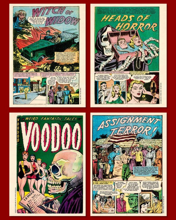 cuadrilátero (4-Sided Triangle) en la que veremos de los que es capaz un tipo por ser acariciado por una bella joven. En su papel (In Character) es una interesante historieta realizada por Reed Crandall y Al Feldstein protagonizada por Bela Kardiff, un actor especializado en cine de terror. Un actor que se lamenta de haber sido encasillado en cine fantástico y cuyo aspecto recuerda a la criatura de Frankenstein que encarnó Boris Karloff, con cuyo apellido componen el de Kardiff, eso sí, poniéndole el nombre de la otra super estrella del género, Bela Lugosi. El asesino (The Assassin) está ilustrada por George Evans y es una historieta que no cuenta con diálogos y en la que serán los carteles explicativos los que contendrán los pensamientos del propio protagonista: el asesino. Precisamente en cine se había hecho recientemente, tan solo dos años antes, un experimento de cine sin diálogos,