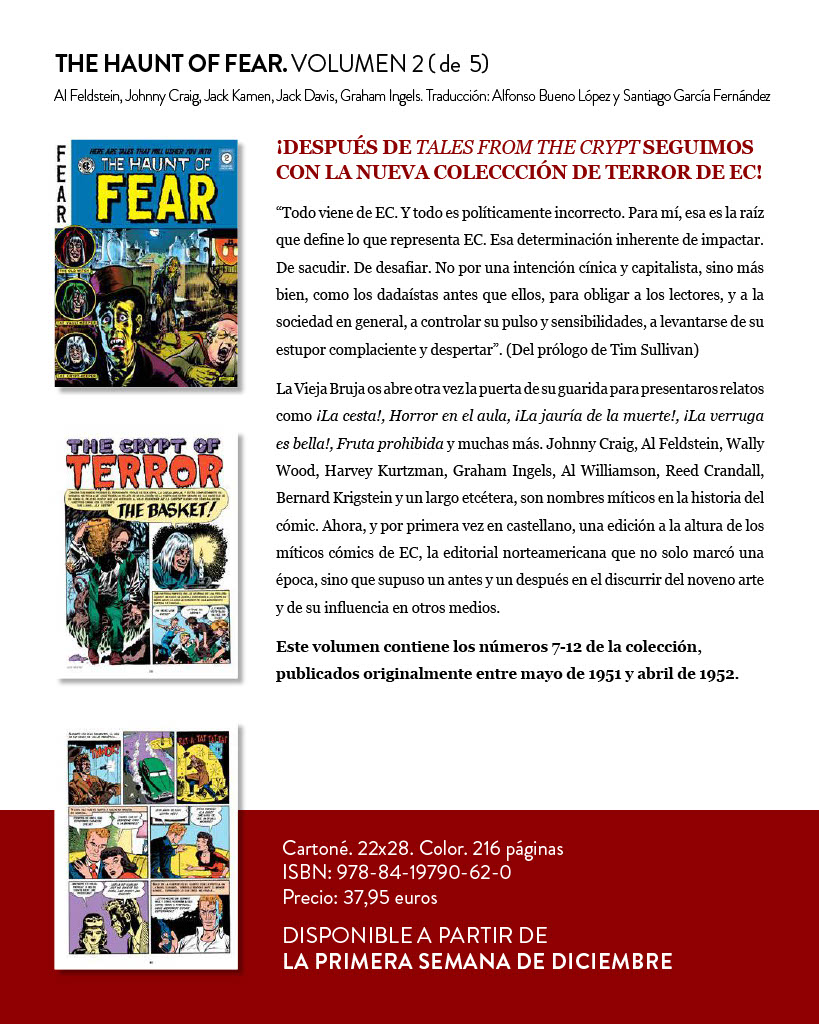 Llega una nueva entrega de la lujosa e imprescindible edición de los clásicos EC que realiza Diábolo Ediciones. Tras completarse Tales from the Crypt, Weird Science, Impact y Shock SuspenStories, vuelve el terror puro y duro con The Haunt of Fear, la colección de la vieja bruja (The Old Witch) pero que, al igual que sucedía con Tales from the Crypt y pasará con The Vault of Horror, contiene historias presentadas por los otros dos incendiarios host: The Vault-Keeper y The Crypt-Keeper.