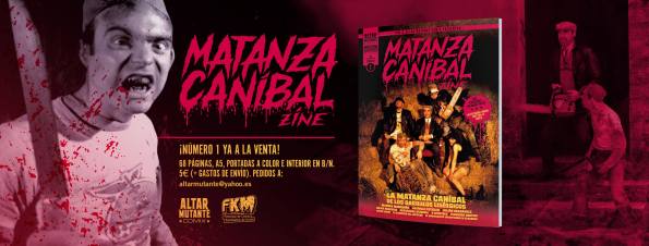 Editado por Altar Mutante, responsable de cómics, fanzines de ilustración e incluso un juego de rol, llega ahora, en colaboración con FKM-Festival de Cinema Fantástico da Coruña, el primer número de Matanza Caníbal, fanzine dedicado al cine fantástico y de terror. Casi enteramente dedicado a ese hito de los noventa que fue La Matanza Caníbal de los Garrulos Lisérgicos (1993), producción grabada en video y financiada con lo que fue todo un antecedente del crowdfunding, esta cinta, escrita y dirigida por Antonio Blanco, que también interpreta a uno de los personajes, contó con la participación del ahora popular Manuel Manquiña, además de Julián Hernández de Siniestro Total o César Strawberry de Def Con Dos. Una aventura con muchas vísceras y humor que, debido al fallecimiento del director, no tuvo continuidad, pero que seguro hubiera dado muchas alegrías al fan del género. Sin ir más lejos, las dos partes de Serendipia, mucho antes de encontrarse, adquirieron una copia de la película, ella durante el festival de Sitges, donde se proyectó y la vendían ellos mismos; y él en Gorgon Video, donde recalaron algunas copias. Matanza Caníbal, pues, hace honor a su nombre y dedica la mayor parte del fanzine a escribir sobre esta cinta, con entrevistas a algunos de los protagonistas. Pero eso no es todo, pues la publicación también dedica artículos a La campana del infierno (1973), la película maldita de Claudio Guerín, director que también falleció al finalizar su obra; El manuscrito encontrado en Zaragoza (Rekopis znaleziony w Saragossie, Wojciech Has, 1965);la película realizada mediante animación Stop Motion O Apóstolo (2012), con artículo y entrevista a su director, Fernando Cortizo, realizada por el especialista en la materia, nuestro amigo Adrián Encinas; y finalmente una entrevista con el dibujante y realizador David Rubín.
