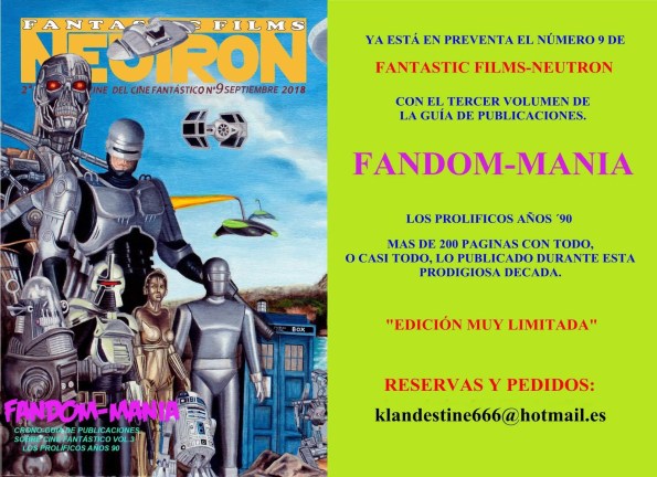 Fandom-Manía, proyecto englobado dentro del fanzine Fantastic Films Neutrón ya lleva cuatro gruesas entregas en las que ha reseñado detalladamente todas las publicaciones sobre cine fantástico que se han publicado en España. O al menos ese es el objetivo perseguido.